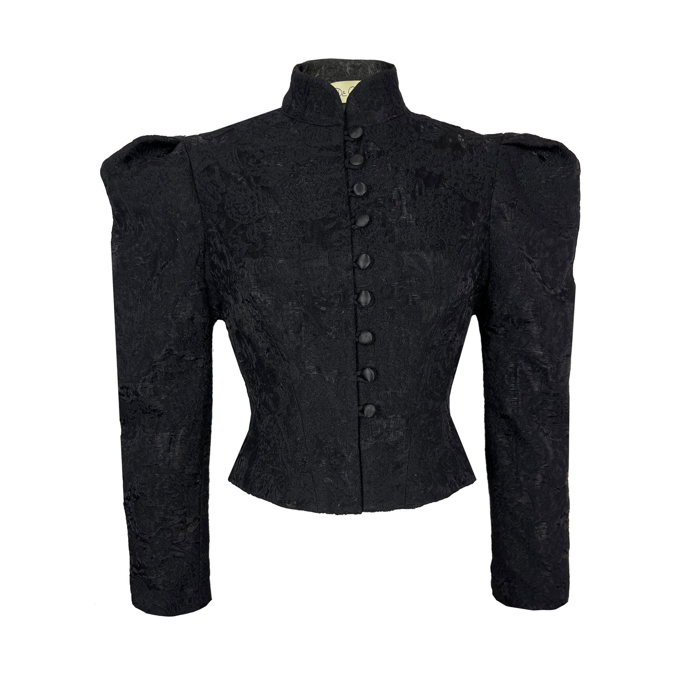The Eclipse jacket is made from luxurious silk mix cashmere fabric, handcrafted by skilled artisans in China. Featuring a cinched waistline and sculpted puff sleeves, it’s designed to flatter while making a statement. The delicate floral motifs and shimmering silk overlay add rich texture and sophistication making it perfect for an evening soiree.