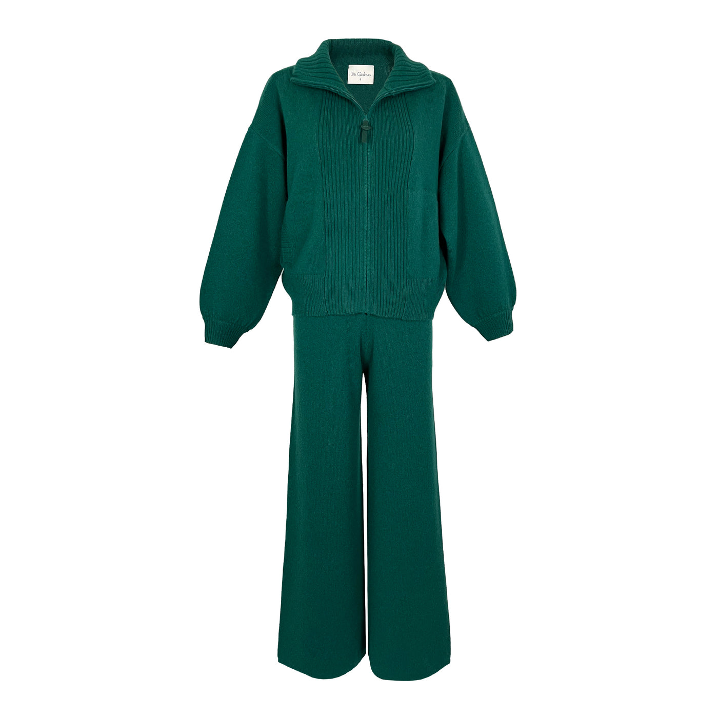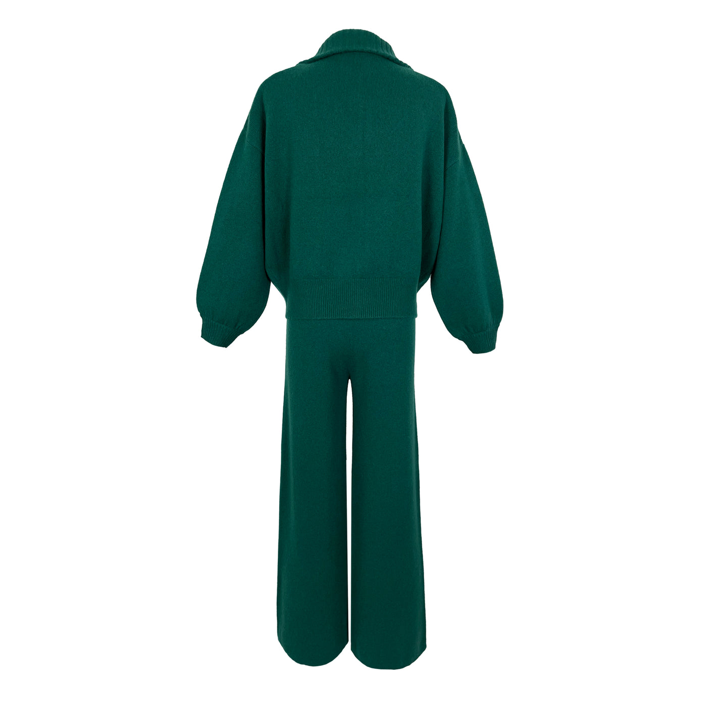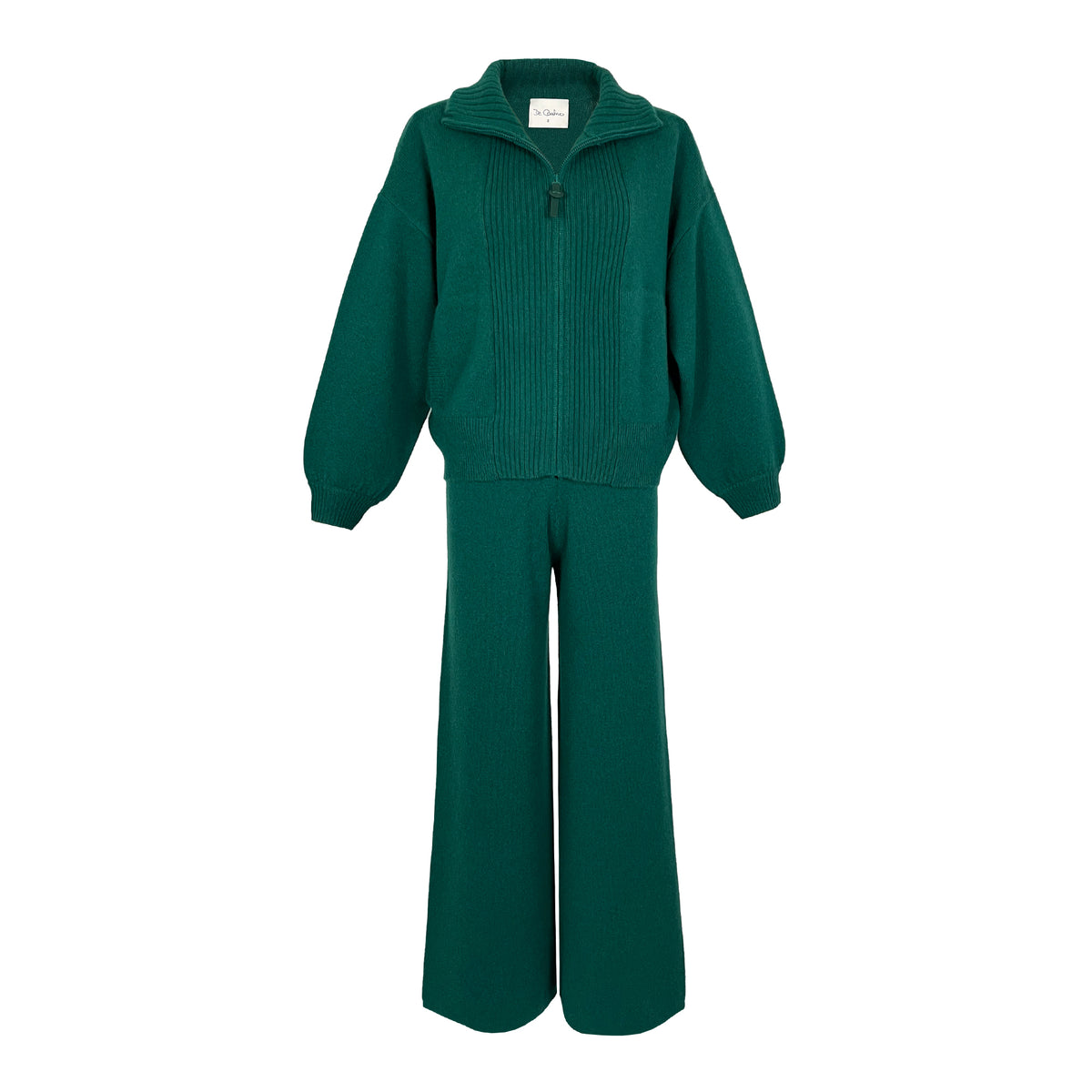 The Jade Whisper Cardigan and pants are crafted from pure Cashmere, bringing together luxury and functionality. It offers a feather-light feel while keeping you warm and cozy. The relaxed silhouette features dropped shoulder sleeves, ribbed detailing along the front, collar and pockets adding texture and structure. A sleek zip closure offers versatility — wear it open for laid-back layering or zipped for a polished finish.